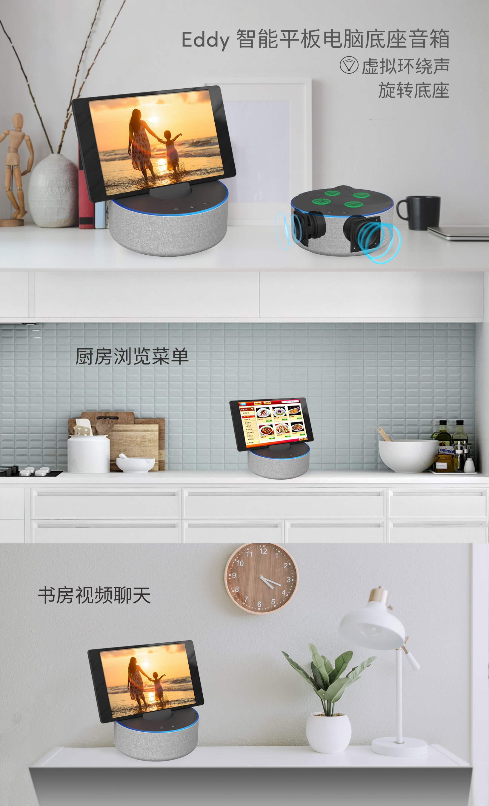 首页 > 产品 & 解决方案 > 智能家居 > Eddy 智能平板电脑底座音箱